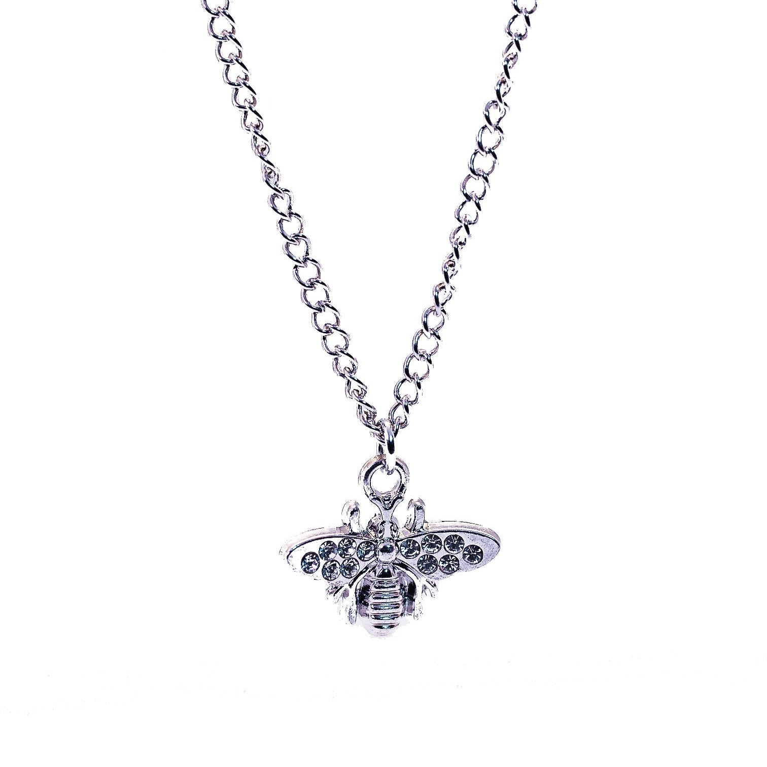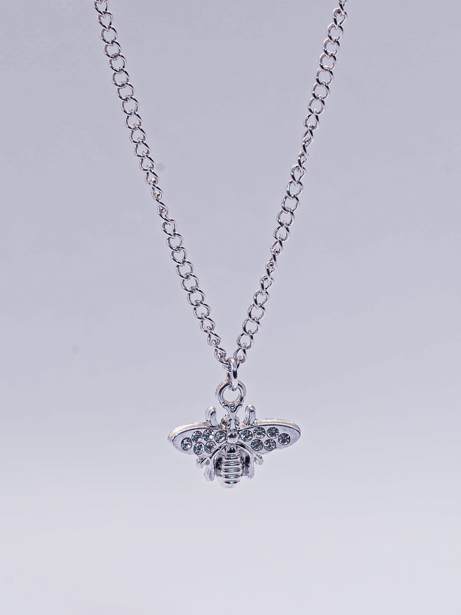 This exquisite sterling silver bee pendant necklace features delicate, tiny gemstone accents that catch the light with a subtle sparkle. This dainty piece is inspired by the beauty of nature, capturing the intricate details of a charming little bee. Perfect for adding a touch of whimsical elegance to any outfit, it effortlessly blends simplicity with sophistication. Whether worn alone for a minimalist look or layered with other necklaces for added dimension, this necklace is an ideal accessory for everyday wear or special occasions. Celebrate your love for nature and delicate jewelry with this timeless, enchanting piece.